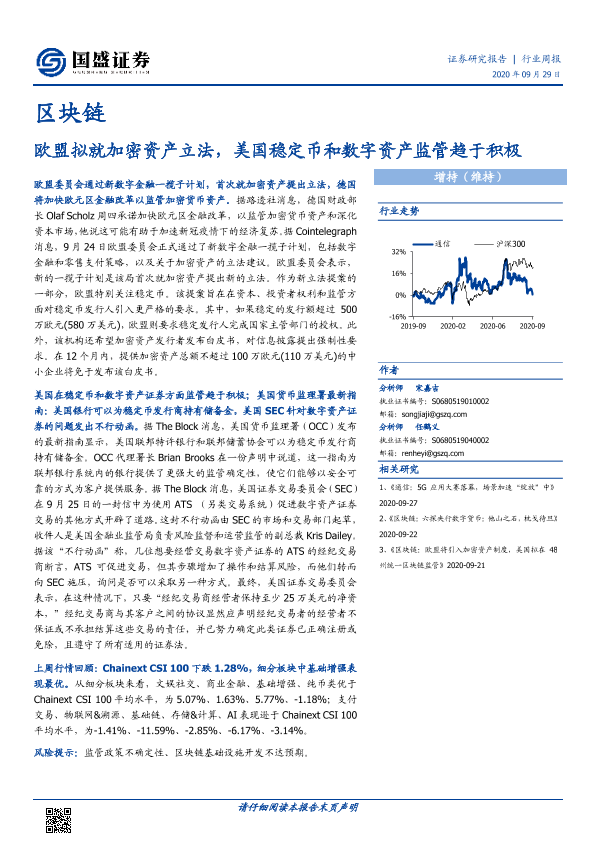 【国盛证券】【20200929】20200929-国盛证券-区块链行业周报:欧盟拟就加密资产立法,美国稳定币和数字资产监管趋于积极-9页