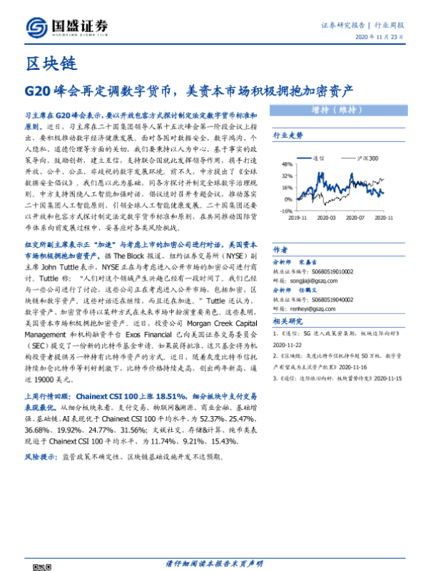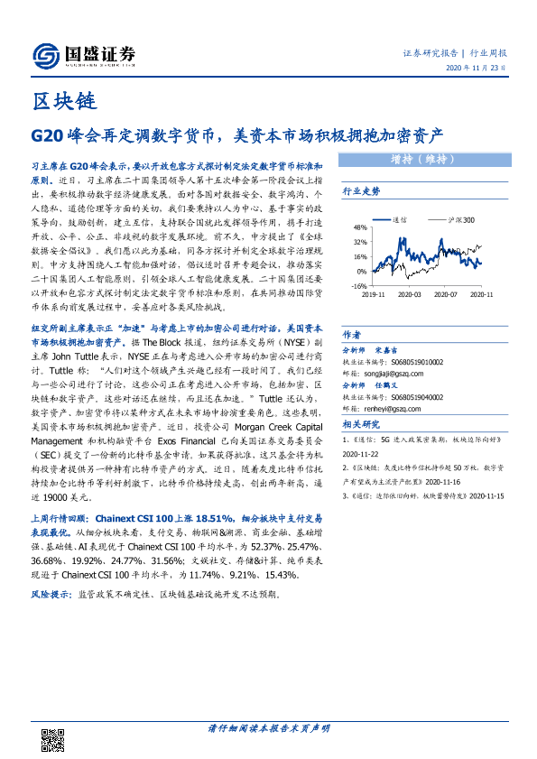【国盛证券】【20201123】区块链行业周报:G20峰会再定调数字货币,美资本市场积极拥抱加密资产-8页