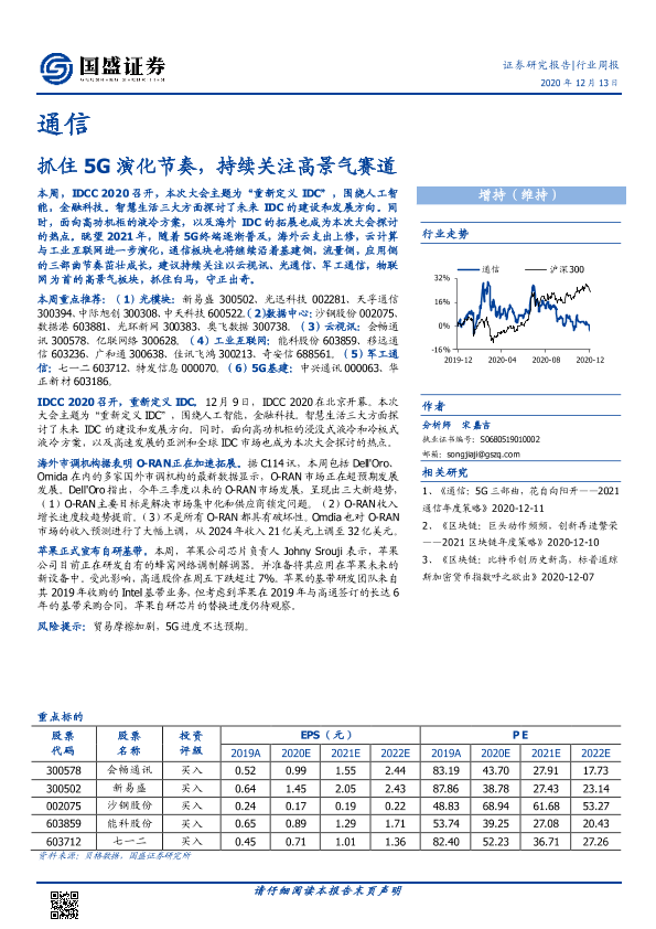 【国盛证券】【20201213】通信行业周报:抓住5G演化节奏,持续关注高景气赛道-12页