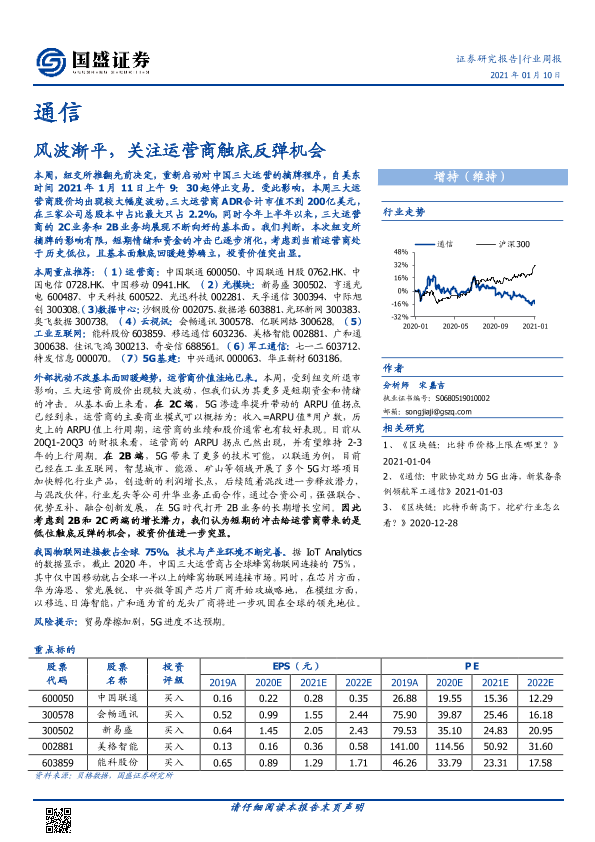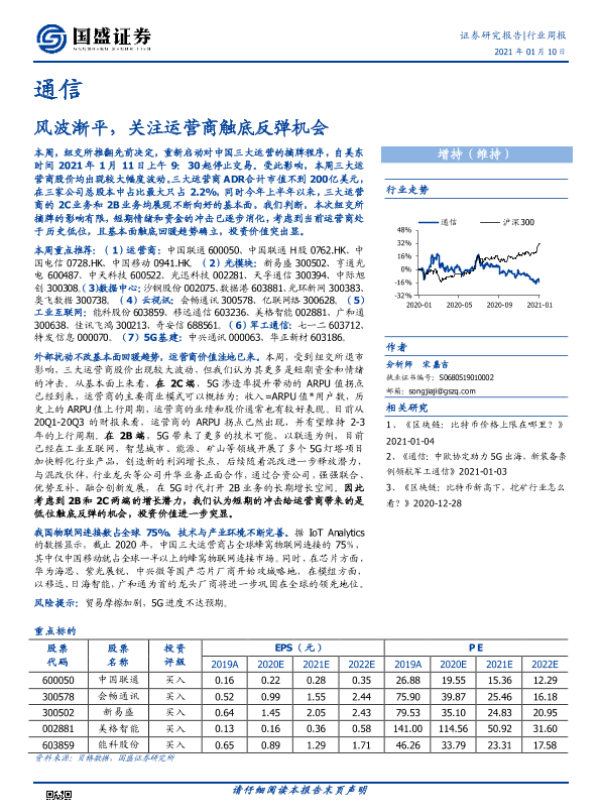 【国盛证券】【20210110】通信行业周报:风波渐平,关注运营商触底反弹机会-14页