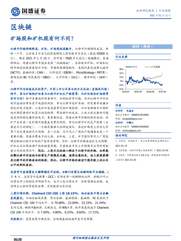 【国盛证券】【20210111】区块链行业周报:矿场股和矿机股有何不同?-9页
