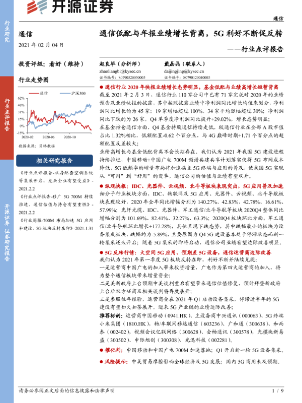 【开源证券】【20210204】通信行业点评报告:通信低配与年报业绩增长背离,5G利好不断促反转-9页