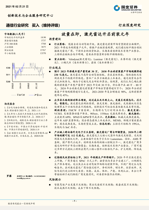 激光雷达 技术创新 通信行业 前装市场 自动驾驶