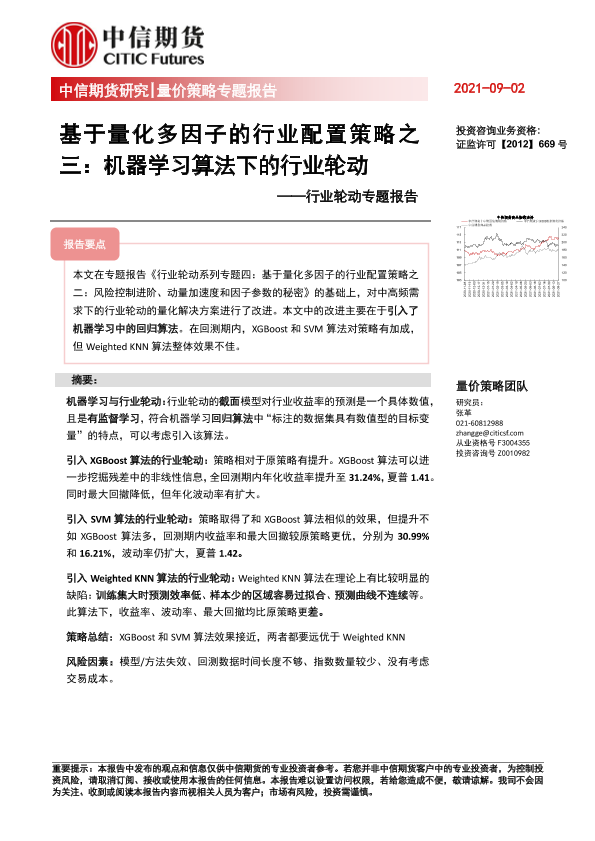 【中信期货】【20210902】量价策略专题报告:行业轮动专题报告,基于量化多因子的行业配置策略之三,机器学习算法下的行业轮动-15页