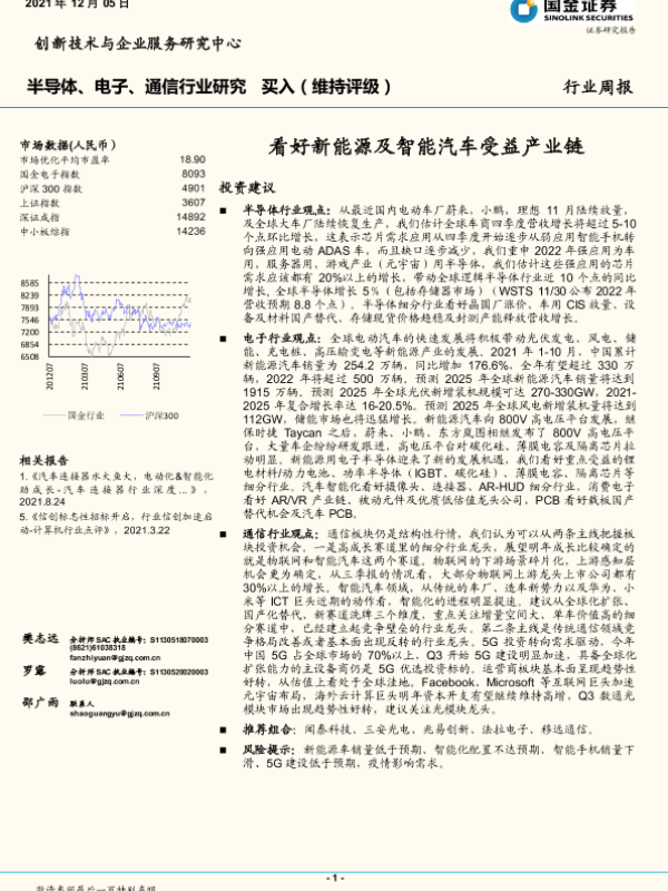 【国金证券】【20211205】20211205-国金证券-半导体、电子、通信行业研究周报:看好新能源及智能汽车受益产业链-18页