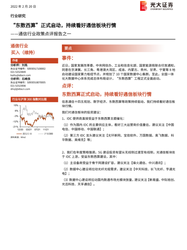 【光大证券】【20220220】通信行业政策点评报告之一:“东数西算”正式启动,持续看好通信板块行情-5页