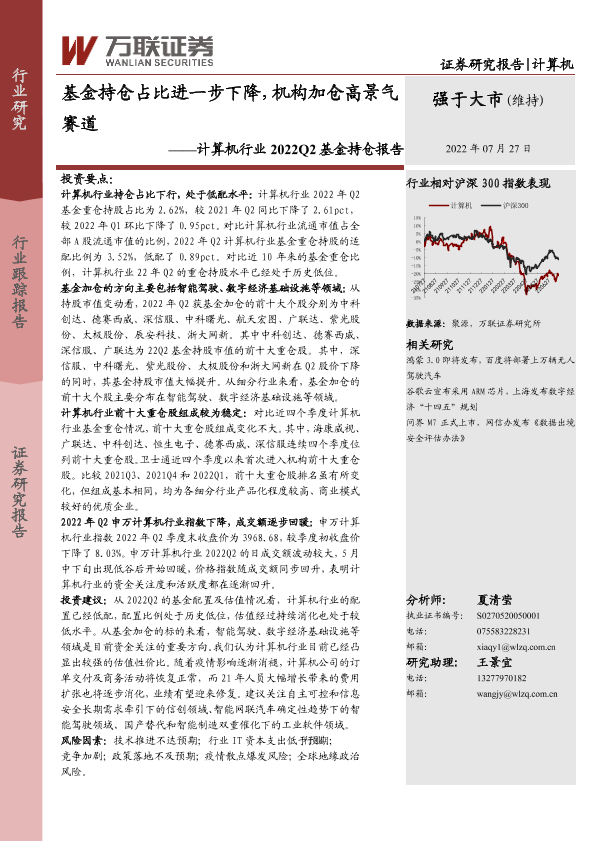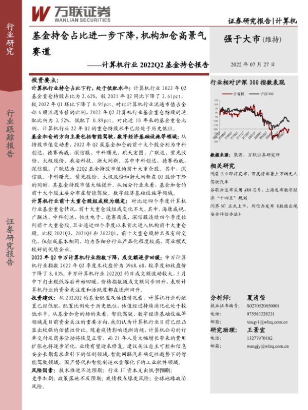 【万联证券】【20220727】计算机行业2022Q2基金持仓报告:基金持仓占比进一步下降,机构加仓高景气赛道-9页