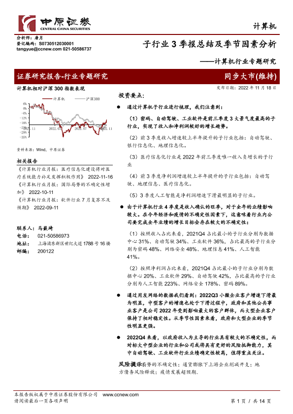 【中原证券】【20221118】计算机行业专题研究:子行业3季报总结及季节因素分析-14页