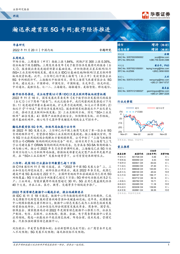 【华泰证券】【20221120】瀚迅承建首张5G专网;数字经济推进-22页