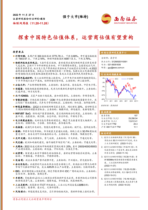 【西南证券】【20221127】20221127-西南证券-通信物联网周报:探索中国特色估值体系,运营商估值有望重构-21页