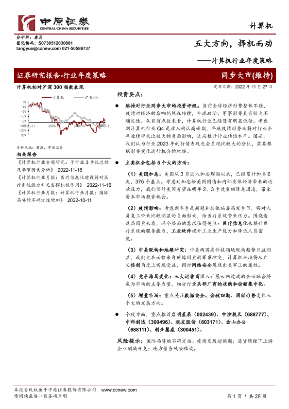 【中原证券】【20221127】20221127-中原证券-计算机行业年度策略:五大方向,择机而动-28页