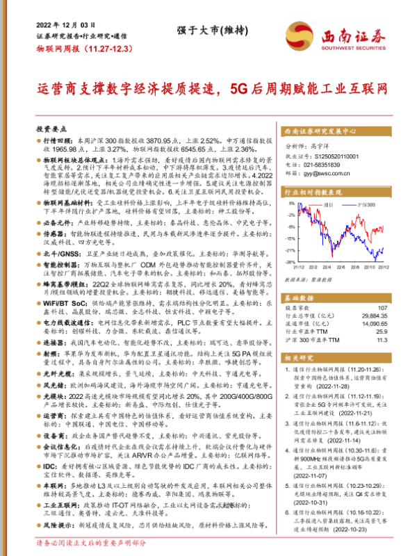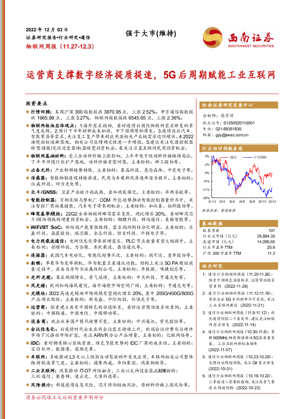 【西南证券】【20221203】物联网周报:运营商支撑数字经济提质提速,5G后周期赋能工业互联网-20页