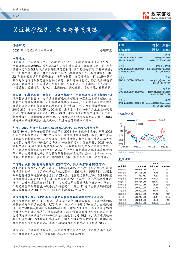 【华泰证券】【20230102】20230102-华泰证券-通信专题研究:关注数字经济、安全与景气复苏-23页