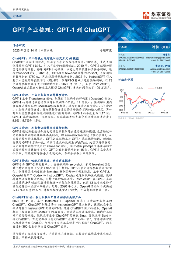 【华泰证券】【20230214】20230214-华泰证券-计算机行业专题研究:GPT产业梳理:GPT-1到ChatGPT-17页