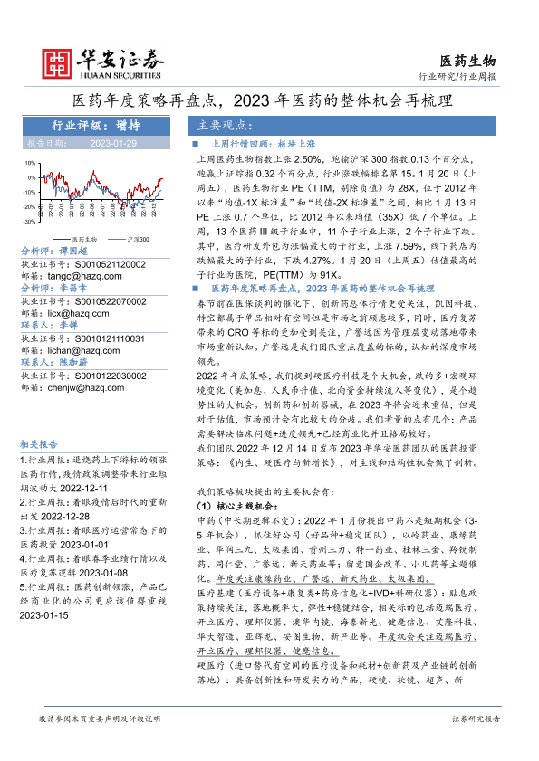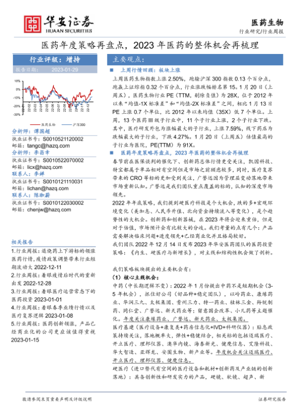 【华安证券】【20230129】医药生物行业周报:医药年度策略再盘点,2023年医药的整体机会再梳理-20页