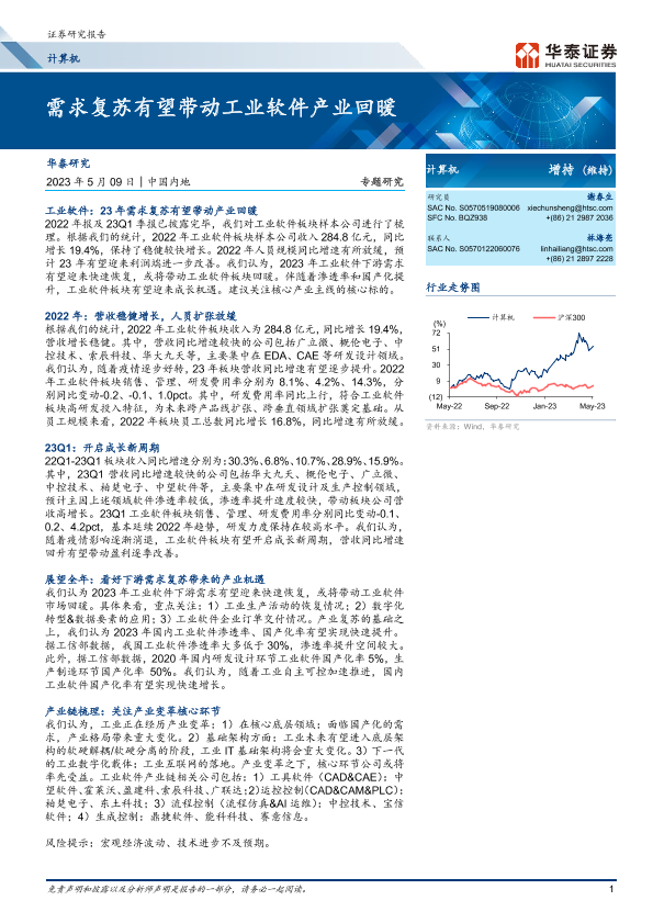 【华泰证券】【20230509】计算机专题研究:需求复苏有望带动工业软件产业回暖-16页