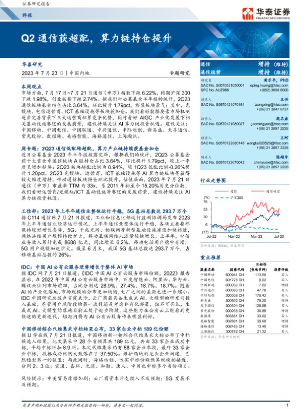 【华泰证券】【20230723】Q2通信获超配,算力链持仓提升-19页