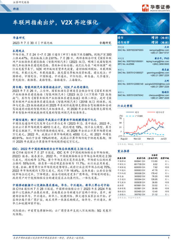 【华泰证券】【20230730】科技专题研究:车联网指南出炉,V2X再迎催化-22页