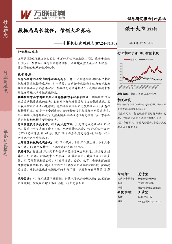 【万联证券】【20230731】20230731-万联证券-计算机行业周观点:数据局局长就任,信创大单落地-12页
