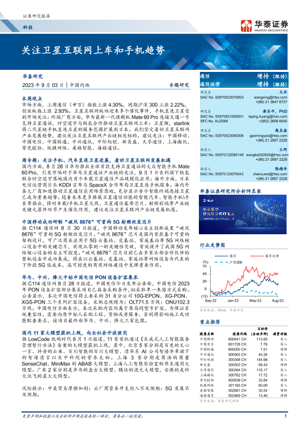 【华泰证券】【20230903】科技专题研究:关注卫星互联网上车和手机趋势-24页