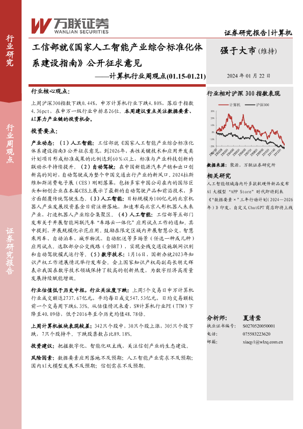 【万联证券】【20240122】工信部就《国家人工智能产业综合标准化体系建设指南》公开征求意见-10页