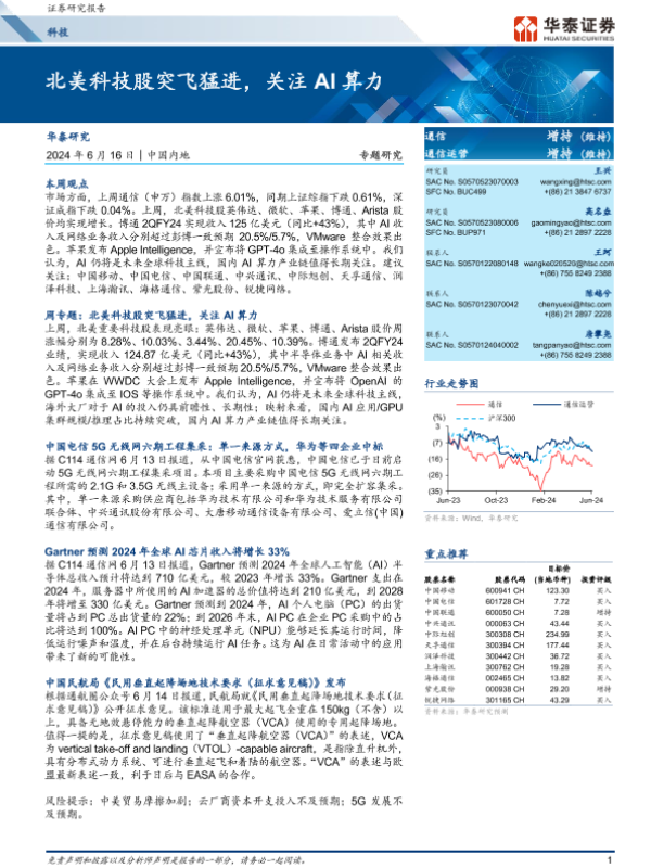 【华泰证券】【20240616】20240616-华泰证券-通信行业专题研究:北美科技股突飞猛进,关注AI算力-19页