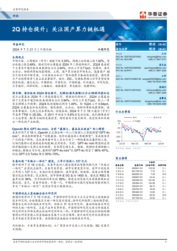【华泰证券】【20240721】2Q持仓提升;关注国产算力链机遇-22页