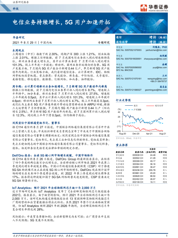 【华泰证券】【20210829】通信行业:电信业务持续增长,5G用户加速开拓-25页