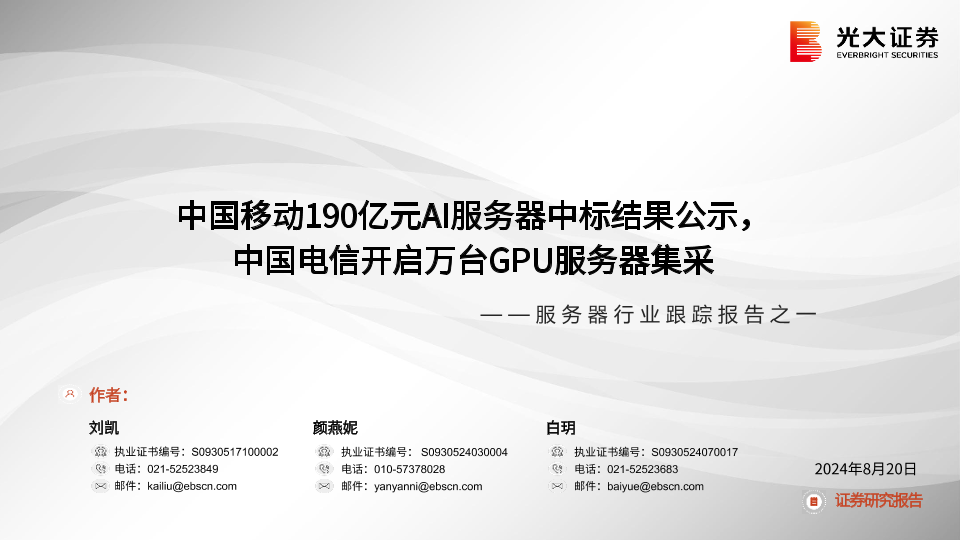 【光大证券】【20240820】中国移动190亿元AI服务器中标结果公示,中国电信开启万台GPU服务器集采-14页