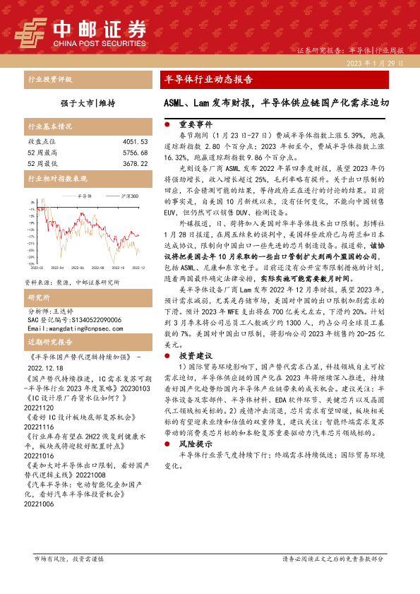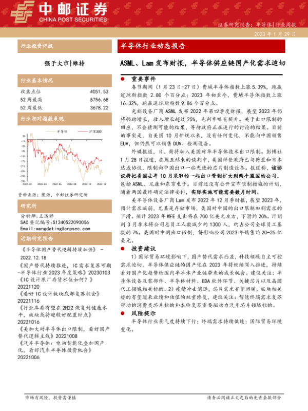 【中邮证券】【20230129】半导体行业动态报告:ASML、Lam发布财报,半导体供应链国产化需求迫切-16页