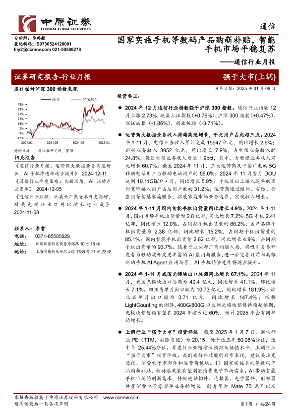 【中原证券】【20250108】国家实施手机等数码产品购新补贴,智能手机市场平稳复苏-24页