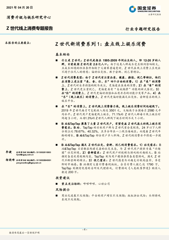 【国金证券】【20210420】Z世代新消费系列1:盘点线上娱乐消费-22页