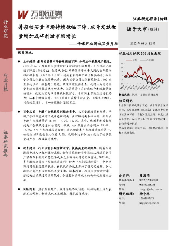 【万联证券】【20220812】暑期档买量市场持续微幅下降,版号发放数量增加或将刺激市场增长-7页