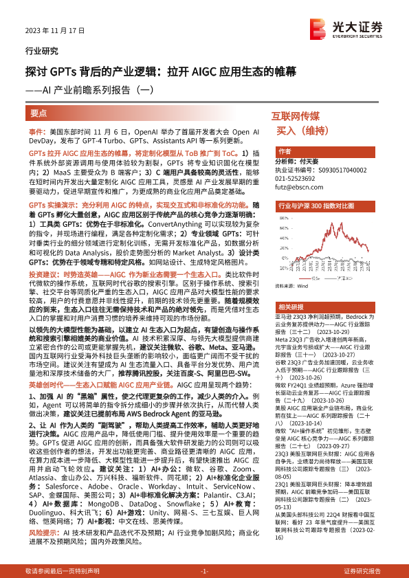 【光大证券】【20231117】探讨GPTs背后的产业逻辑:拉开AIGC应用生态的帷幕-13页
