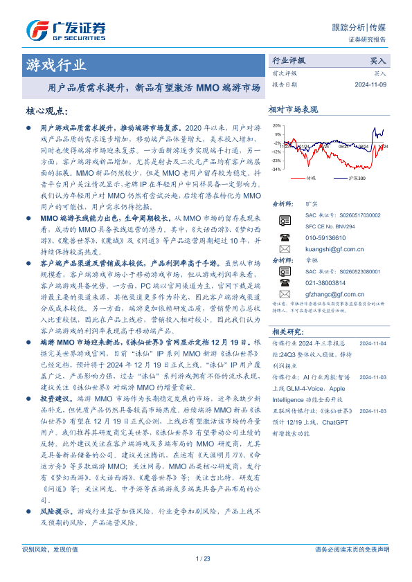 【广发证券】【20241109】用户品质需求提升,新品有望激活MMO端游市场-23页