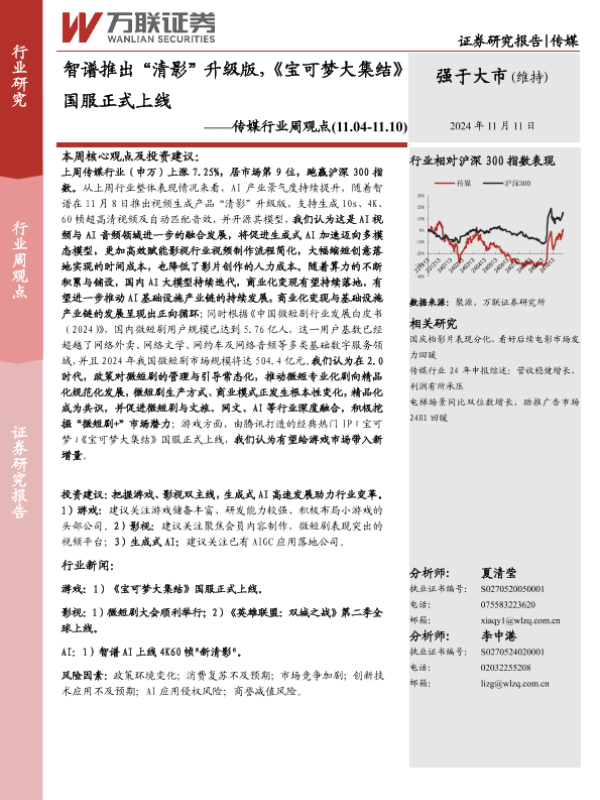【万联证券】【20241111】智谱推出“清影”升级版,《宝可梦大集结》国服正式上线-12页