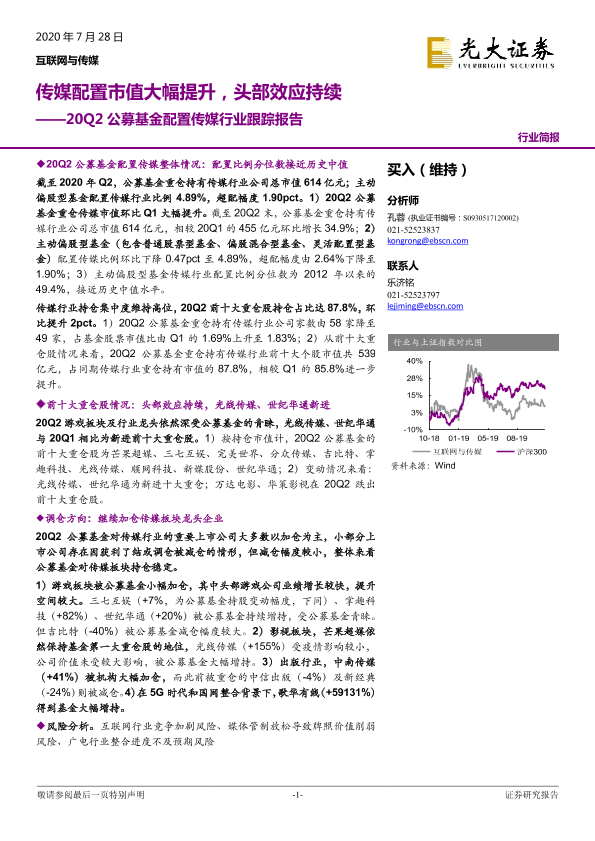 【光大证券】【20200728】20Q2公募基金配置传媒行业跟踪报告:传媒配置市值大幅提升,头部效应持续-8页