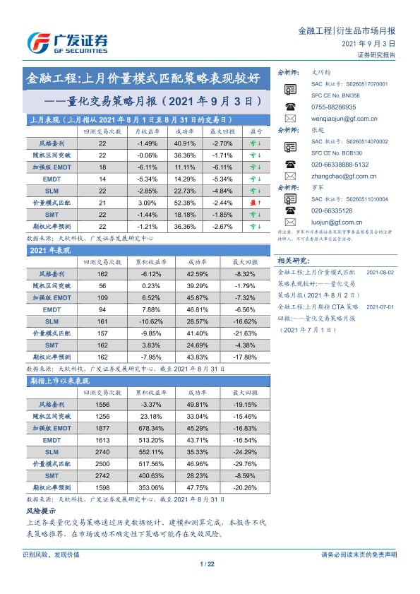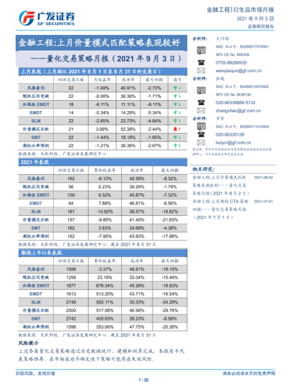 【广发证券】【20210903】量化交易策略月报:上月价量模式匹配策略表现较好-22页