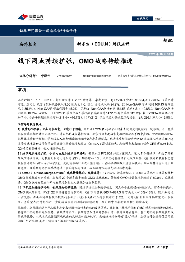 【国信证券】【20201016】海外教育:财报点评-线下网点持续扩张,OMO战略持续推进-7页