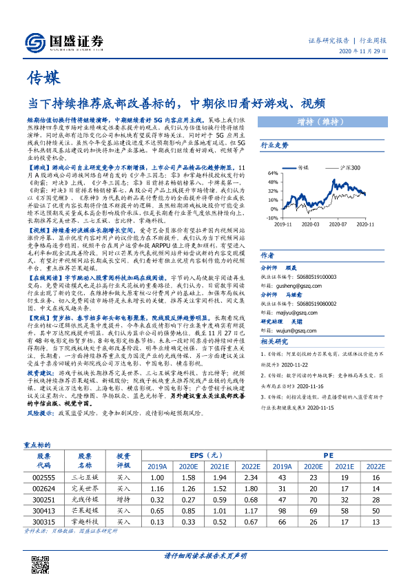 【国盛证券】【20201129】20201129-国盛证券-传媒行业周报:当下持续推荐底部改善标的,中期依旧看好游戏、视频-17页