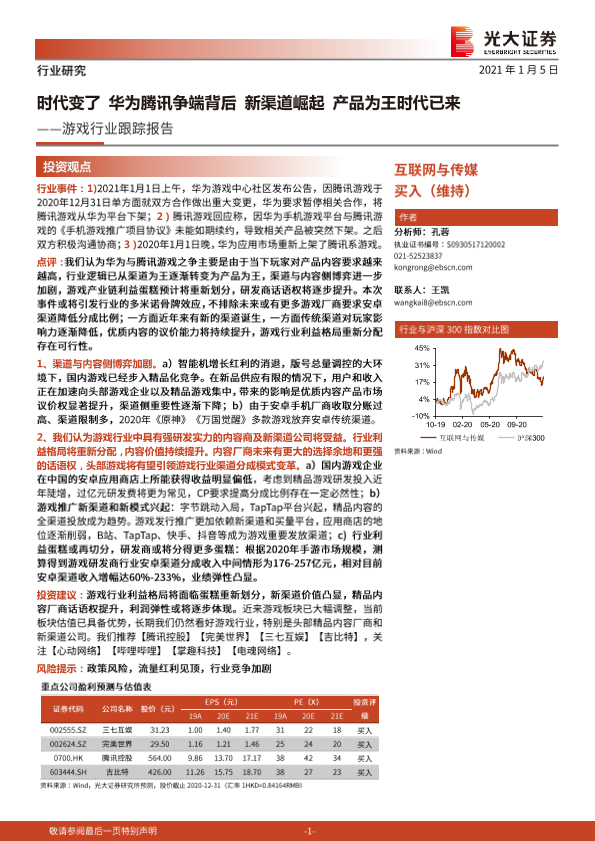 【光大证券】【20210105】游戏行业跟踪报告:时代变了 华为腾讯争端背后 新渠道崛起 产品为王时代已来-11页