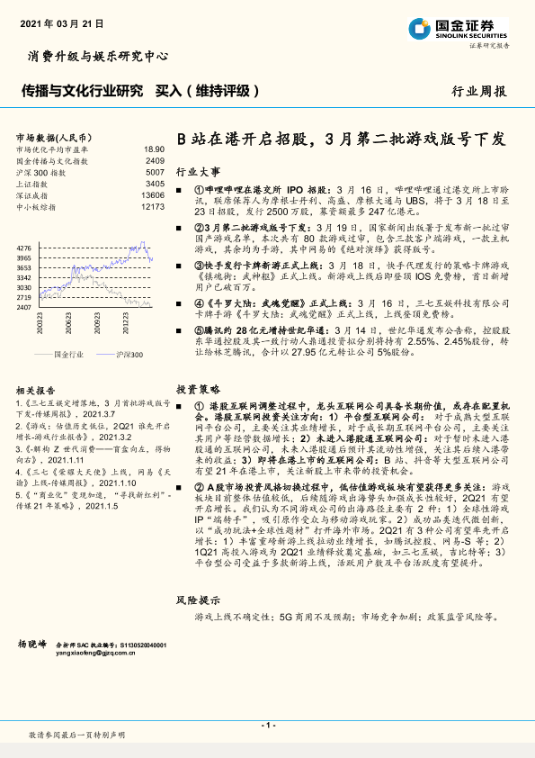 【国金证券】【20210321】传播与文化行业研究:B站在港开启招股,3月第二批游戏版号下发-12页