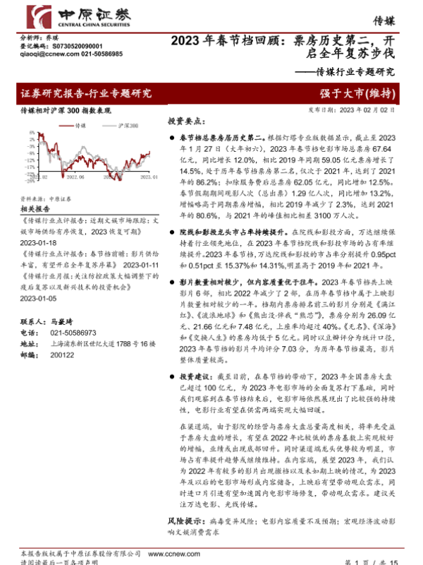 【中原证券】【20230202】2023年春节档回顾:票房历史第二,开启全年复苏步伐-15页