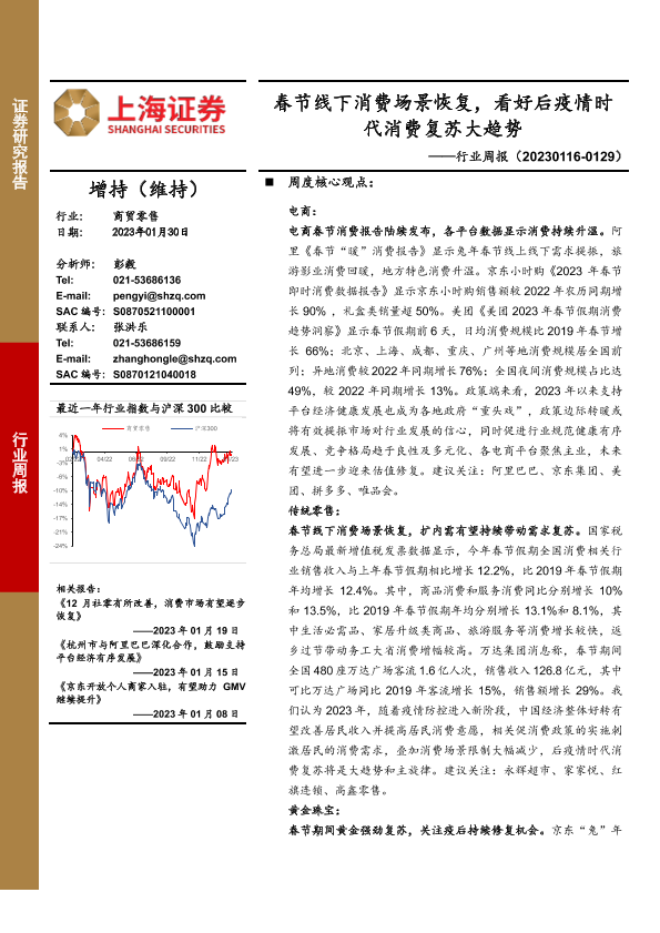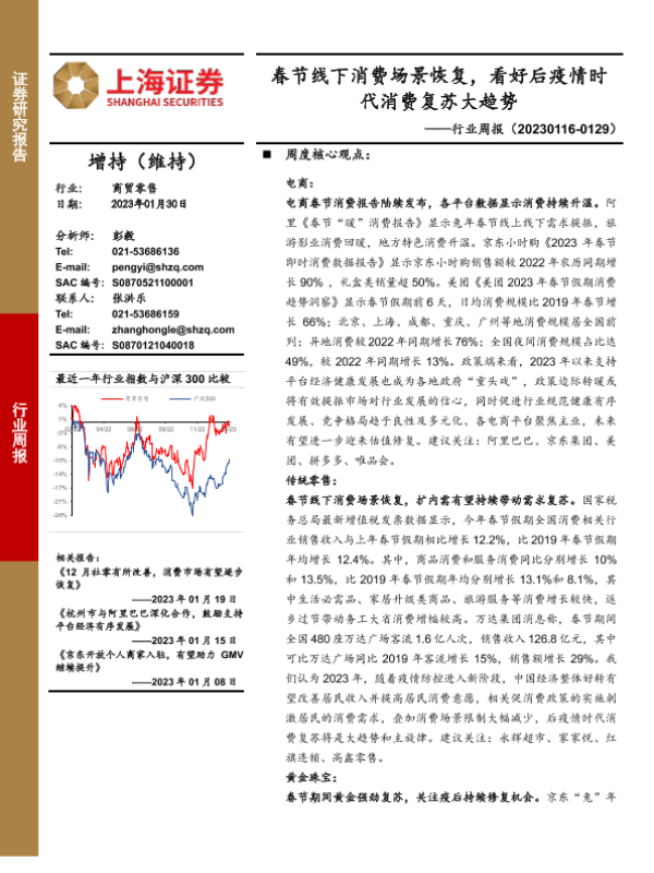 【上海证券】【20230130】商贸零售行业周报:春节线下消费场景恢复,看好后疫情时代消费复苏大趋势-14页