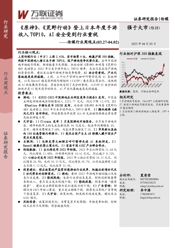 【万联证券】【20230403】《原神》、《荒野行动》登上日本年度手游收入TOP10,AI安全受到行业重视-14页