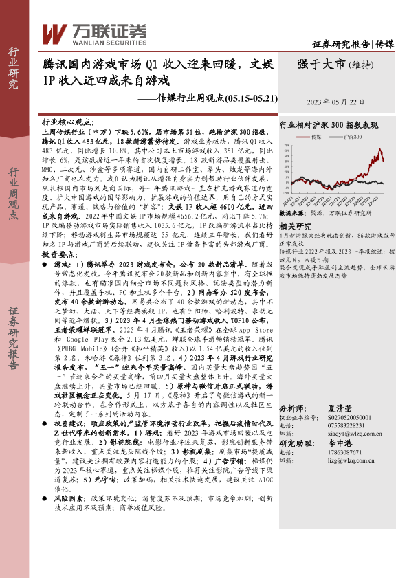 【万联证券】【20230522】腾讯国内游戏市场Q1收入迎来回暖,文娱IP收入近四成来自游戏-14页
