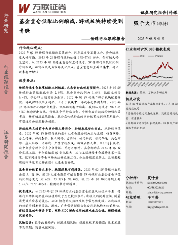 【万联证券】【20230801】传媒行业跟踪报告:基金重仓低配比例缩减,游戏板块持续受到青睐-12页