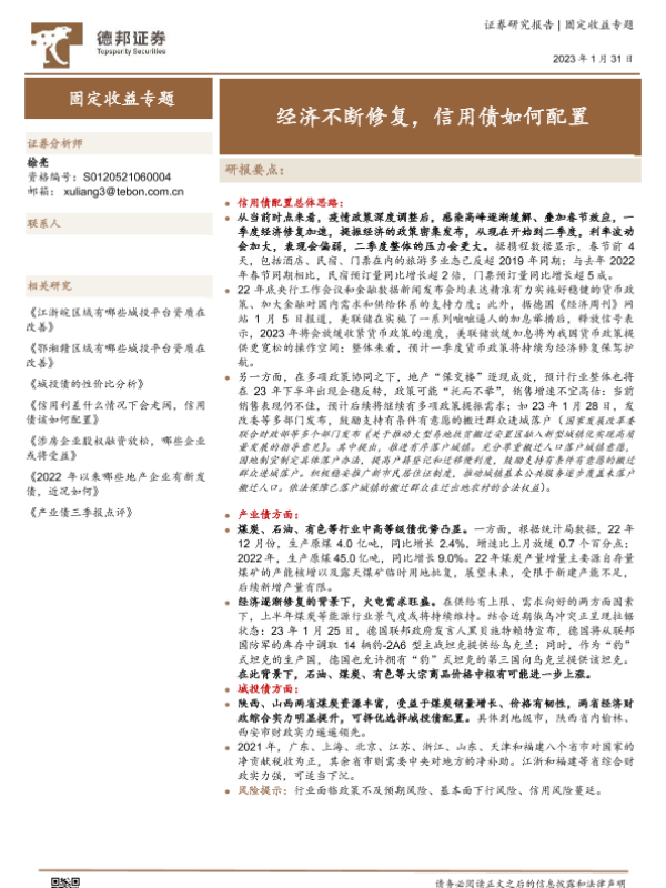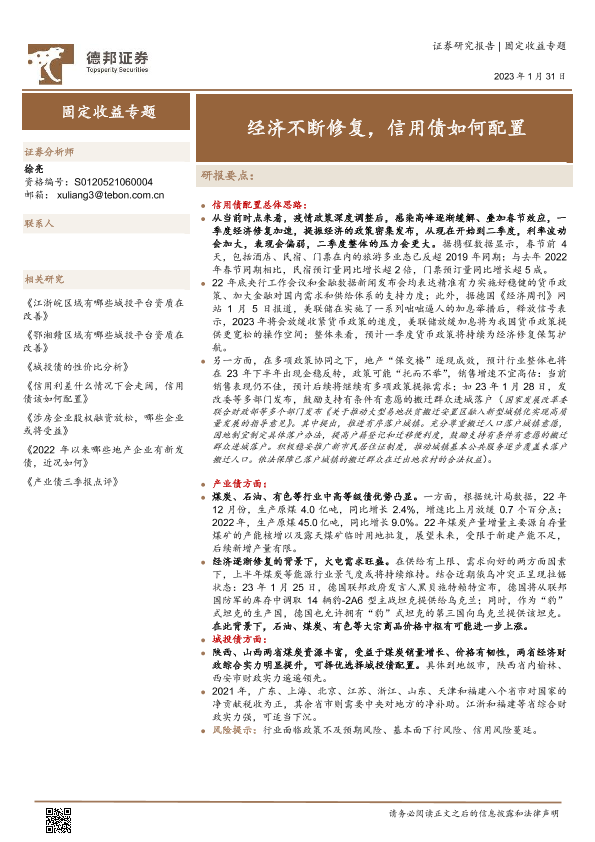 【德邦证券】【20230131】固定收益专题:经济不断修复,信用债如何配置-24页