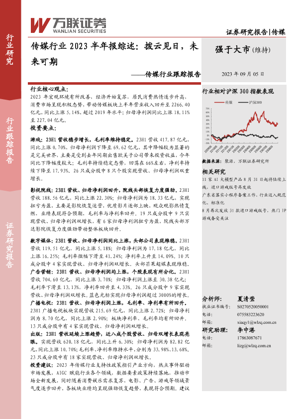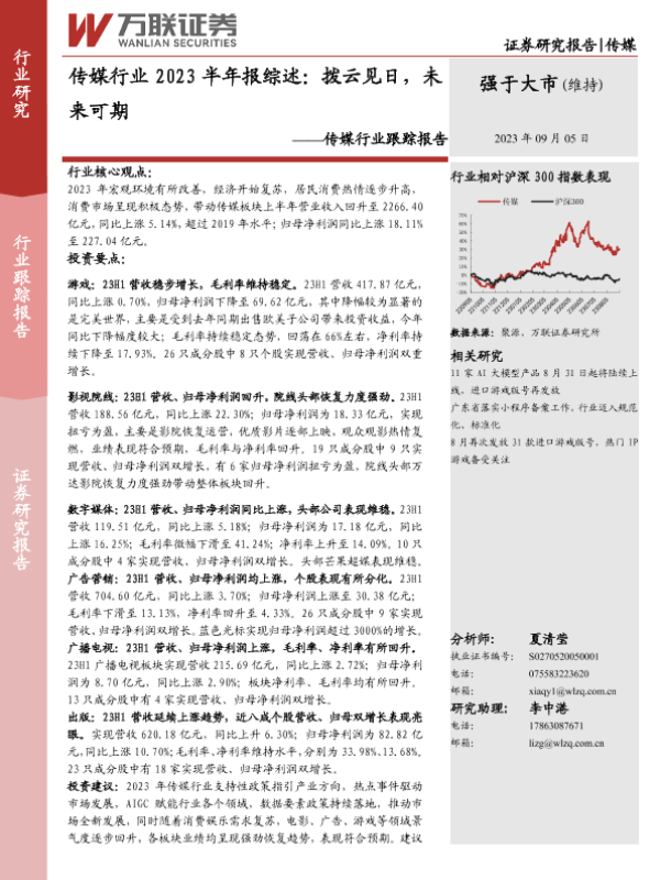 【万联证券】【20230905】传媒行业2023半年报综述:拨云见日,未来可期-13页