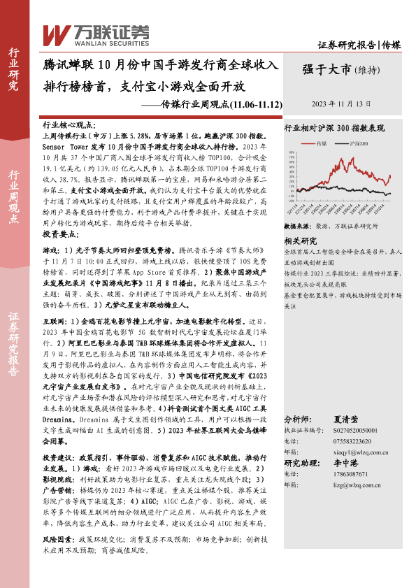 【万联证券】【20231113】腾讯蝉联10月份中国手游发行商全球收入排行榜榜首,支付宝小游戏全面开放-13页